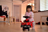 The saleslady recommended we up the number of times we feed Caitlyn the formula, and in doing so, would make it easier to finish 26 cans. Personally, I thought she was just trying to get me to buy the formula so she could make some money, but I really wanted the slide, and this would be a good reason to give the wife. And to make things even easier for me, I was also informed that because I would be buying at least 19 cans, I would be getting a free toy car for Caitlyn too. Sweet!