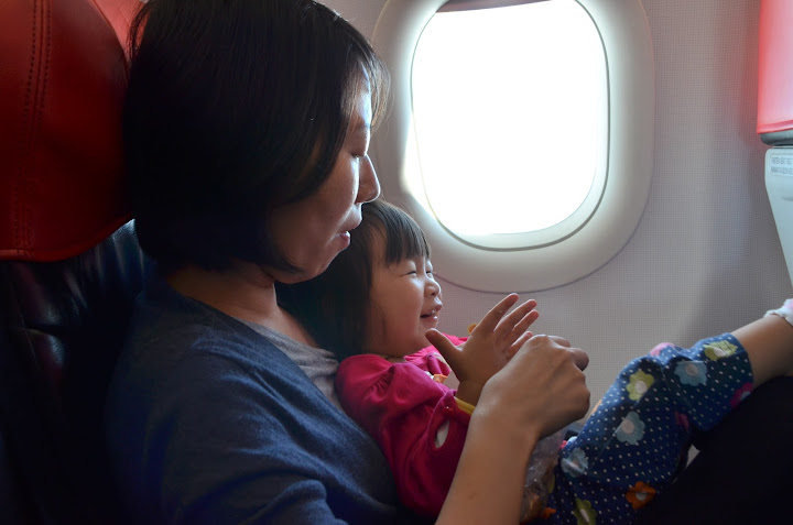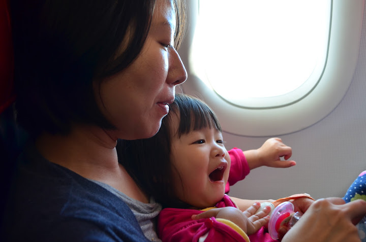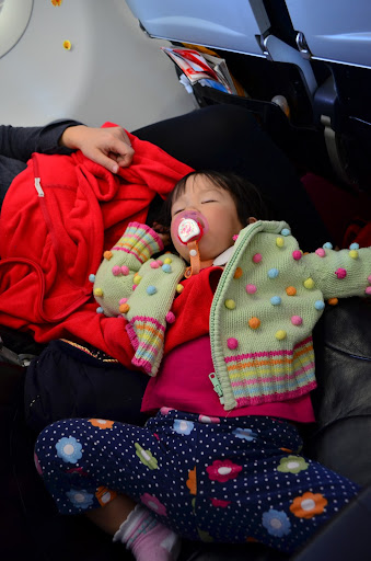 Amazingly, she didn’t cry the entire flight over, which completely surprised me. I thought she might be scared of the new experience, but I think she was really too immersed in and curious about all the new things around her, that she never got scared.