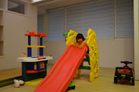 As I was dutifully waiting in line to purchase the 12 cans of formula that the wife had asked for, I noticed that there was a play slide that was out on display. I asked the saleslady how much it was because I’ve been really wanting to get one for Caitlyn since she loves going down the slide at the park.